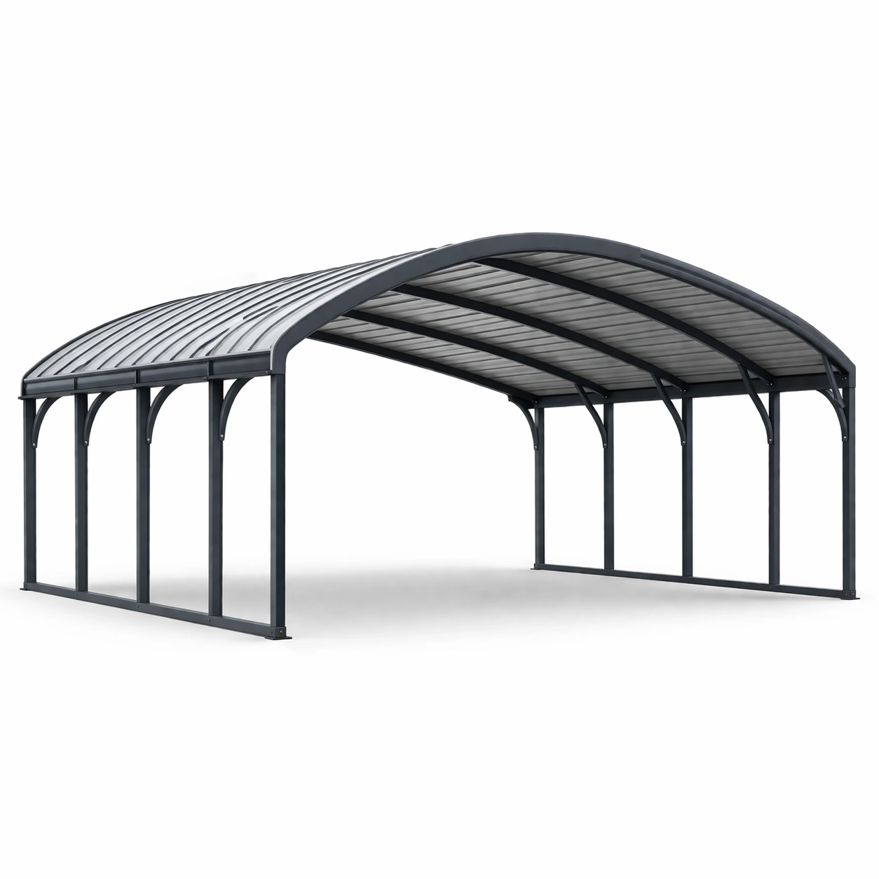 Dieses Carport verfügt über einen stabilen Stahlrahmen, der pulverbeschichtet ist, um Rostschutz zu bieten. Das Dach besteht aus 6 mm dickem Polycarbonat, das UV-beständig und wasserfest ist.