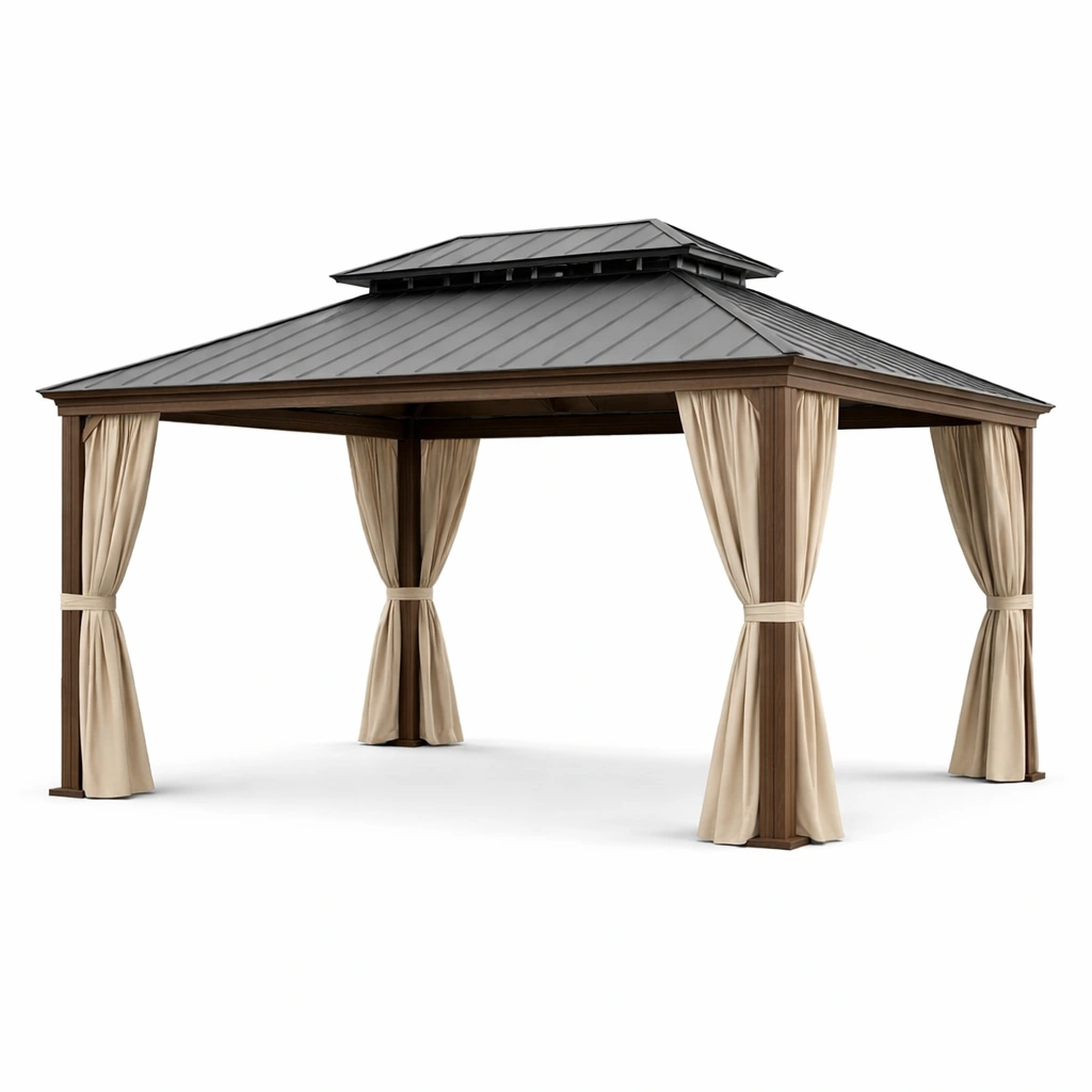 Farbe: Rahmen: Dunkelbraun, Dach und Vorhänge: Beige