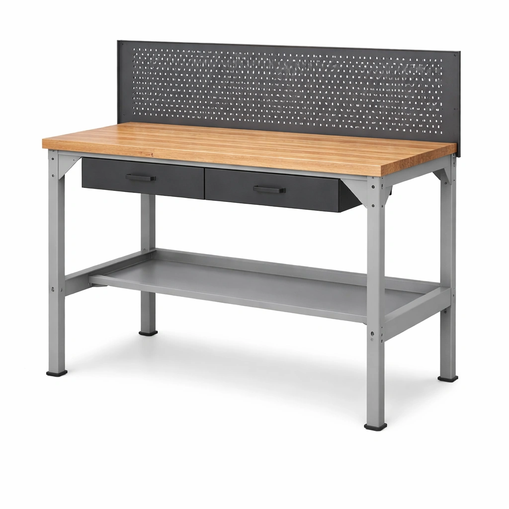 Werkbank holz stahl mit schubladen